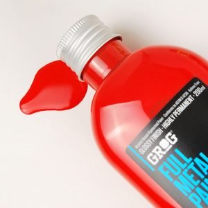 At first available in black, white and silver only, Grog Full Metal Paint is now getting rich of 13 new colours, three of them fluorescent. Thanks to its new formula, the colours are bright but also permanent, highly covering and with a finish so glossy you could see your reflection in it! Also, the Full Metal Paint shades can be blended between them, in order to obtain always new and personal colours. Full Metal Paint is perfect to refill any marker but it gives its best in couple with Grog Squeezer.»GROG Paint fra Italia – 200ml Super Permanent blank maling som er nesten umulig å få vekk etter at den har tørket. Tilgjengelig i 19 forskjellige farger.