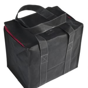 Holds enough cans for a big sized production, cans won’t tip over if cardboard boxes are used, bag is discrete in matt black, can be closed with zip, reusable.AVAILABILITY: In stock
