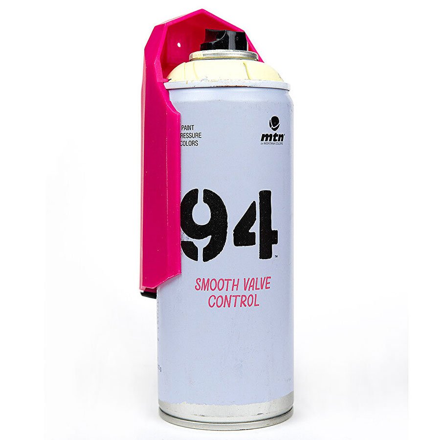«The Tinypink is a professional stencil cap which, once attached to the spray can, allows for ultra-fine lines. The spray jet, of just a few millimeters, is much more precise than with any other cap. It is the essential accessory for creating tiny details or for working in very small formats, on canvas for example. The Tinypink Stencil cap differs from the traditional Stencil cap by its paint recovery system. The excess paint no longer flows on the sprayer (and on the hands) or on the floor, the workspace is now clean. It is collected in a dedicated tank and can be reused thanks to the removable cap located at the bottom of the tank. No more waste of paint, the excess can be recycled in a marker or used with a brush for example.»