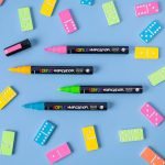 The paint in these markers has excellent opacity, quickly dries to the touch and is totally dry within 24 hours, depending on the surface. Once dry, it offers great resistance to light and water, has no odor and is xylene free.