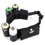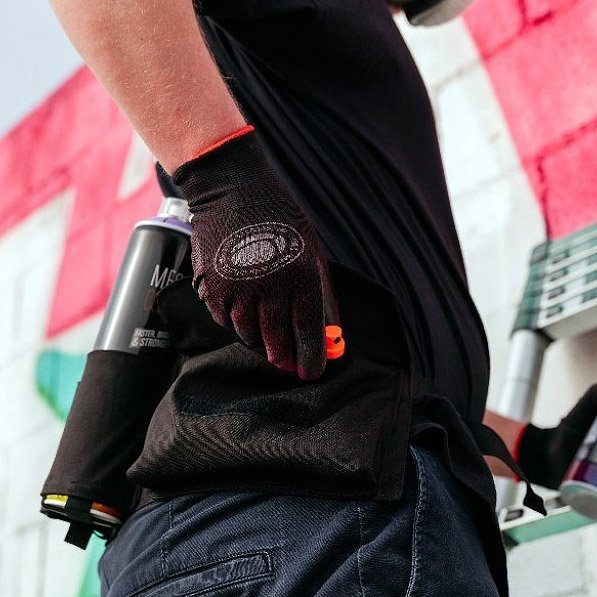 The MTN Tool Belt is a utility belt specially designed to hold spray cans. Although its pockets are designed for 400ml cans, they also work for other formats of aerosols. In addition, the belt has two different sized accessory pockets in which to store your belongings, like your cell phone or keys, and other tools such as markers or caps. It’s made of 500 cordura resin and 40 mm polypropylene tape, with a trident buckle and velcro closure.