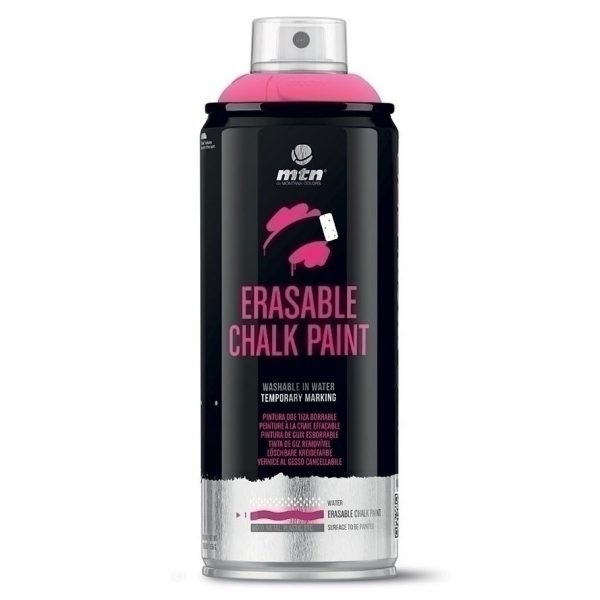 Montana Colors’s MTN PRO Chalk is a water-washable spray paint can, ideal for temporary marking or temporary art. Chalk has a texture similar to chalk. To erase it, nothing could be simpler since it is soluble in water. The less porous the surface, the faster the cleaning. Versatile, it is as effective for temporary signage of an event as a workshop with children. At the end, a simple sponge or basic water under pressure will take care not to leave any trace on the support.