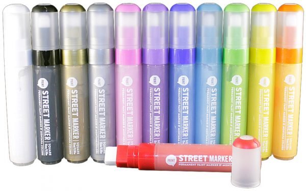 Very solid paint marker. 12 colors (2 of which are metallic) that will meet the needs of the most demanding writers due to their high fluidity, opacity, and resistance.»